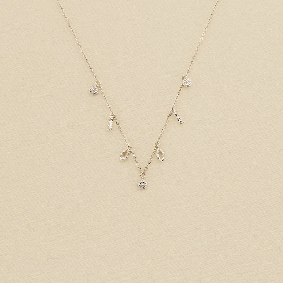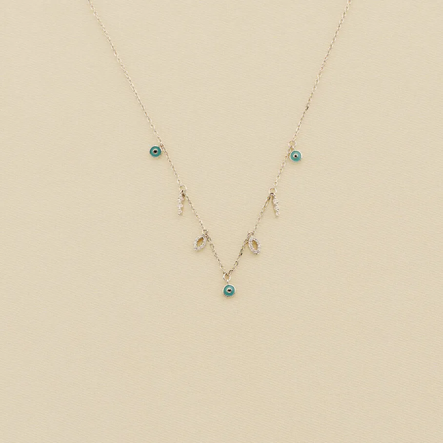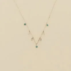Collier chaine maille forçat, en argent véritable 925/1000, orné de différentes pampilles: Œils turcs, oxydes de zirconium…