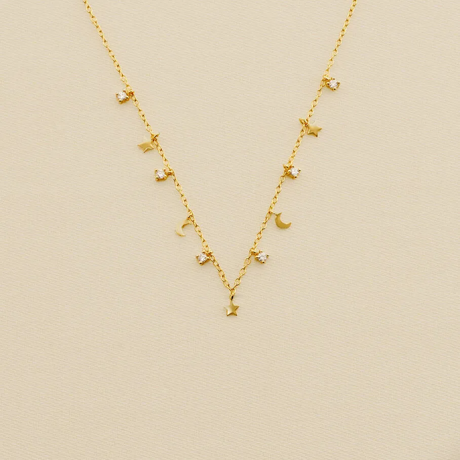 Collier, en argent véritable doré 750/1000, avec des mini pampilles lunes et étoiles