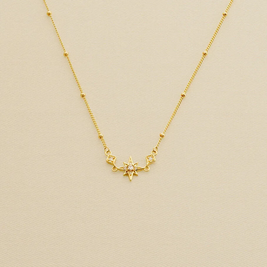 Collier mi-long, en argent véritable doré 750/1000, avec une étoile en pendentif serti d’un oxyde de zirconium sur une fine chaine