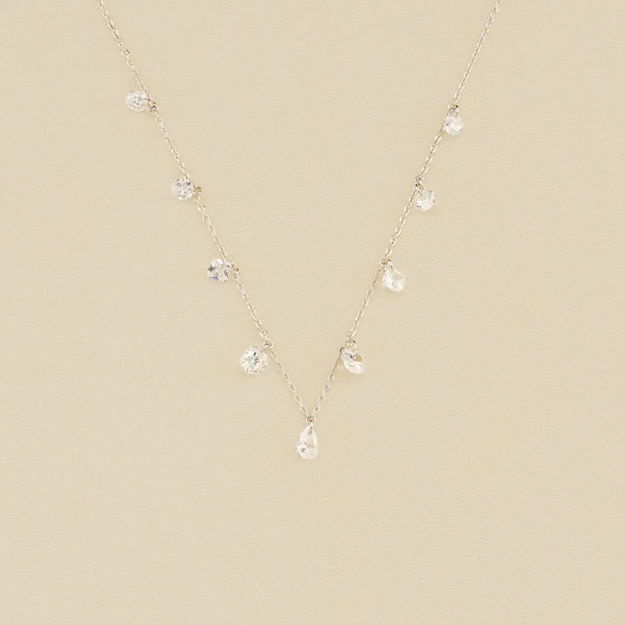 Collier court, en argent véritable, avec des oxydes de zirconium percés, en pampilles, en forme de poire, de rond et coussin