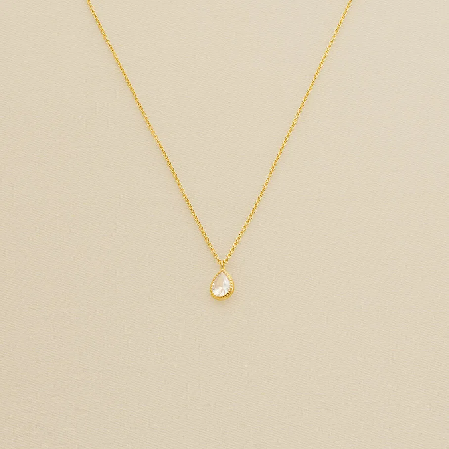 Collier court en laiton doré 750/1000, oxyde de zirconium goutte serti