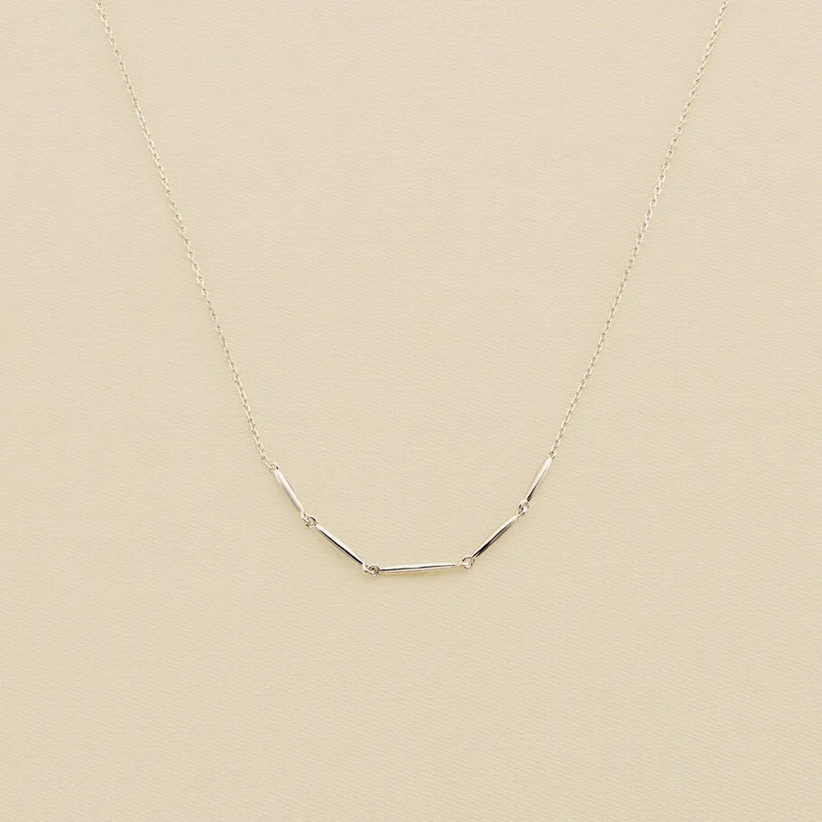 Collier chaine fine, en argent véritable 925/1000, orné de cinq pampilles rayonnantes.