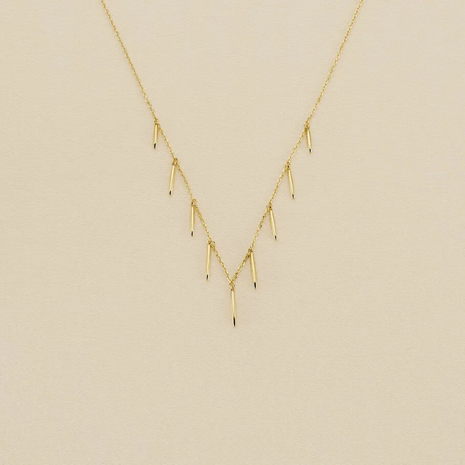 Collier chaine fine, en argent 925/1000 et doré 750/1000, orné de pampilles rayonnantes.