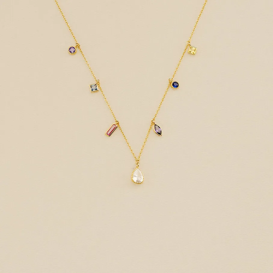 Collier court en laiton doré 750/1000 avec des oxydes de zirconium de différentes formes en pampilles