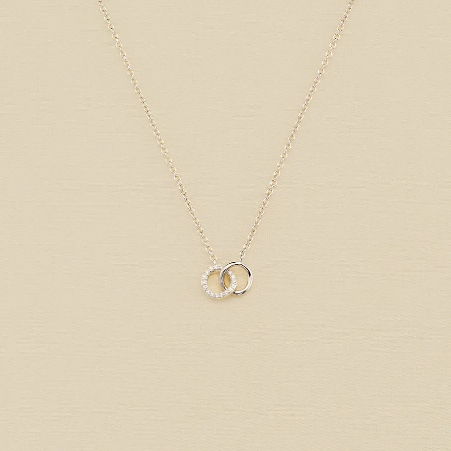 Collier court en argent véritable orné de deux anneaux entrelacés dont un pavé d’oxydes de zirconium
