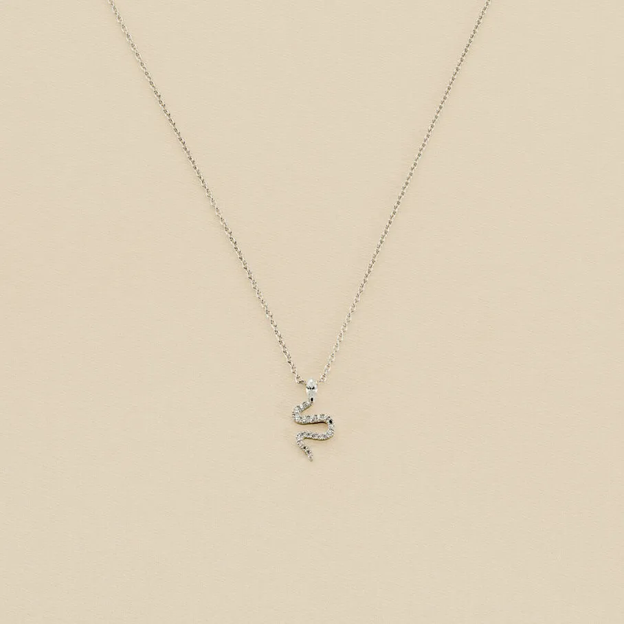Collier court en argent véritable orné d’un serpent pavé d’oxydes de zirconium