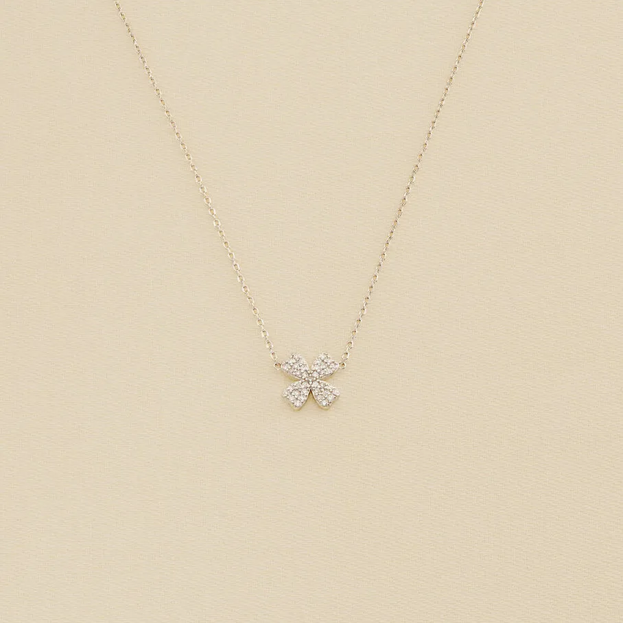 Collier court en argent véritable orné d’un trèfle à quatre feuilles pavé d’oxydes de zirconium
