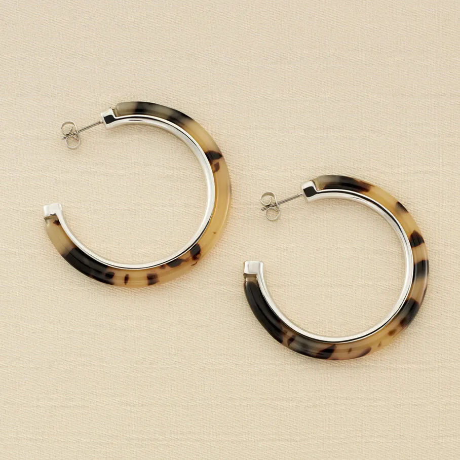 Boucles d’oreilles créoles de 45 mm de diamètre en laiton et acétate de couleur