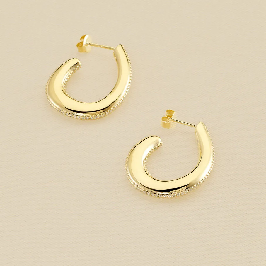 Créoles, grand modèle, en argent 925/1000 et dorées 750/1000, représentant une demi goutte et dont la tranche est sertie d’oxydes de zirconium