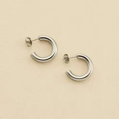 Boucles d’oreilles créoles en acier inoxidable, fil rond épais avec un fini brillant de 20 mm de diamètre