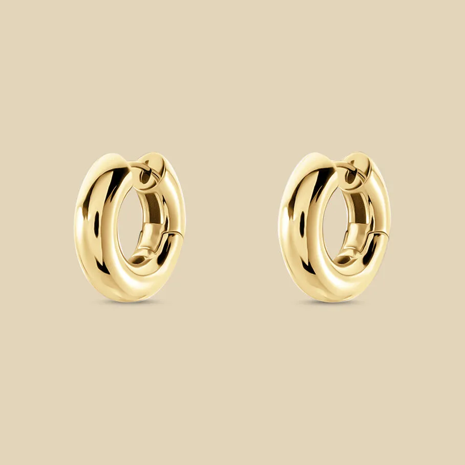 Créoles dodues, en laiton doré à l’or fin, en métal lisse ou avec un motif léopard en émail