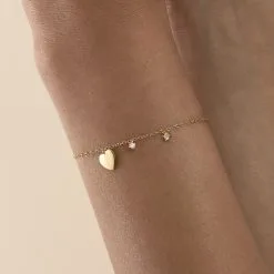 Jonc fin ouvert, en argent véritable doré 750/1000, avec des fleurs d’oxydes de zirconium aux extrémités et un fin graineti sur le pourtour