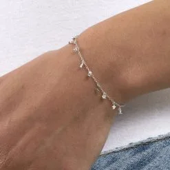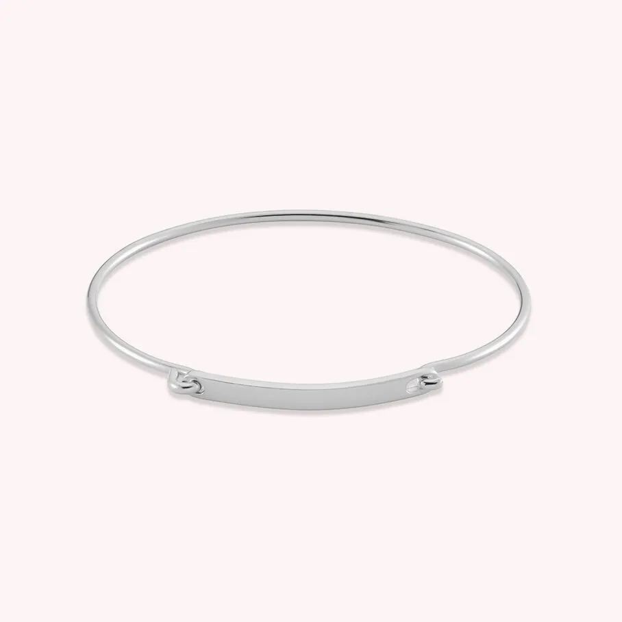 Bracelet jonc en argent véritable avec une plaque mobile sur laquelle les charms peuvent se cumuler.