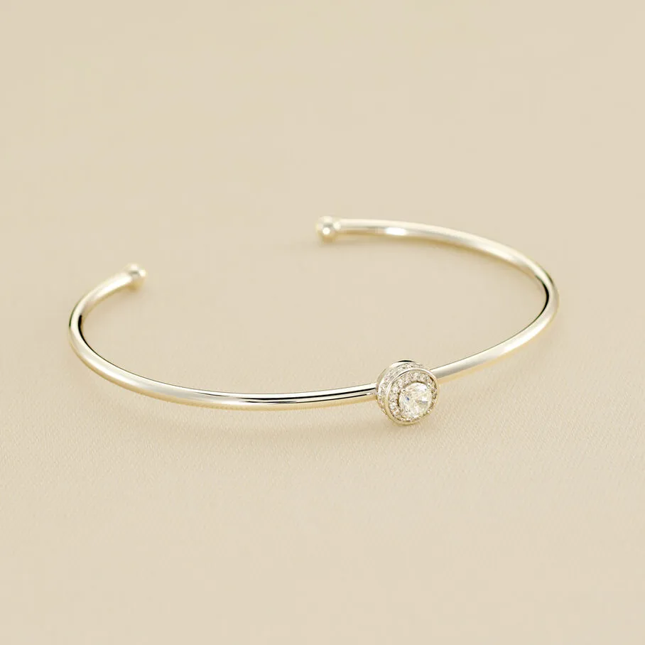Jonc, en argent véritable, avec un mini oxyde rond autour duquel sont micro sertis des oxydes de zirconium