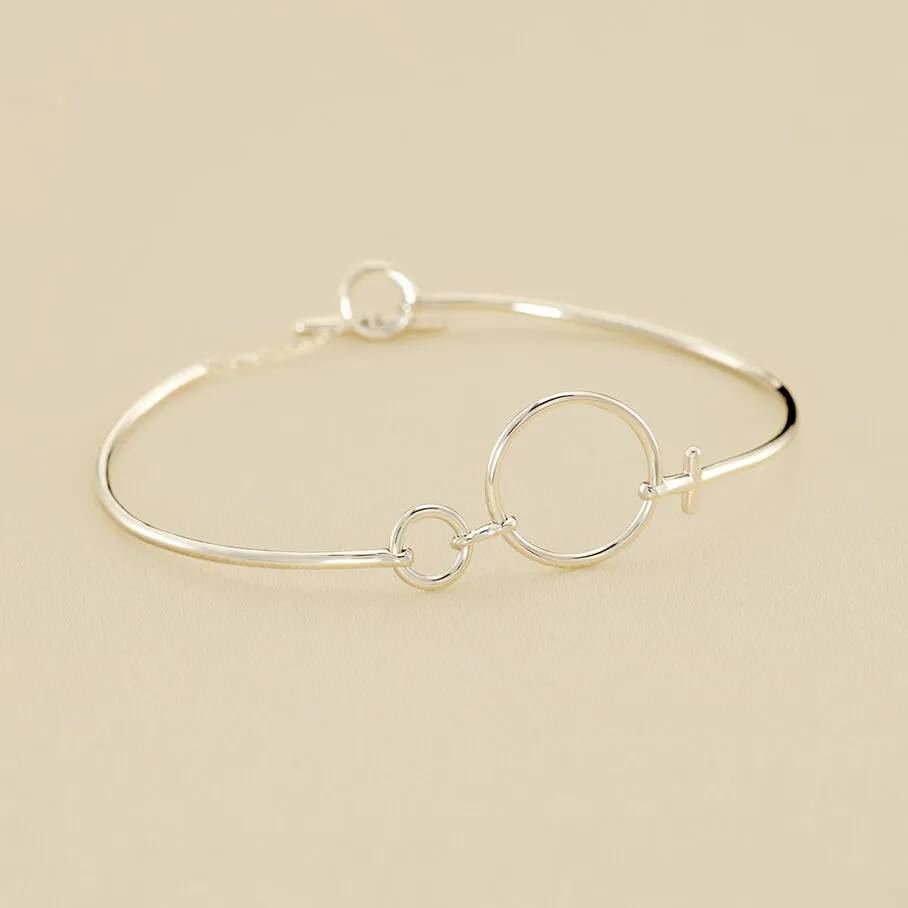 Jonc fin, en argent véritable, avec memory wire, dont le motif rappelle le symbole de la femme