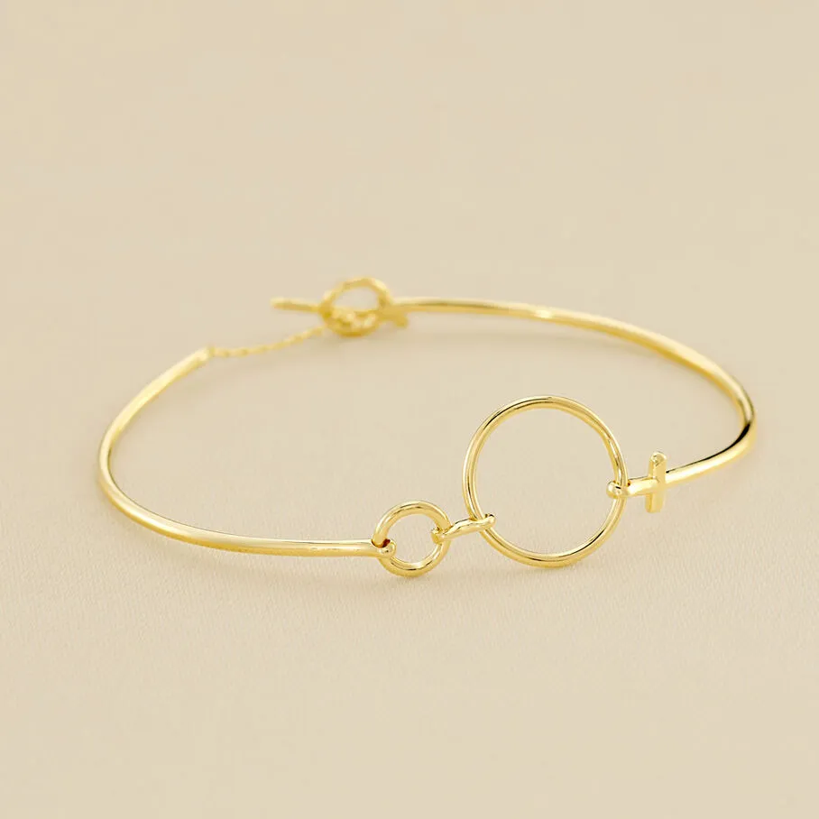 Jonc fin, en argent véritable doré 750/1000, avec memory wire, dont le motif rappelle le symbole de la femme