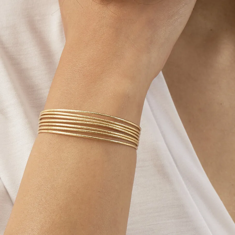 Manchette, en laiton doré 750/1000, faite d’une multitude de fil texturés