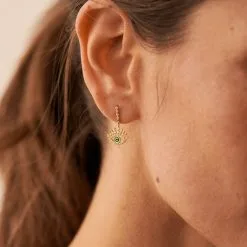 AGATHA FR Boucles D’oreilles Pendantes LUCKY EYE – Vert / Doré