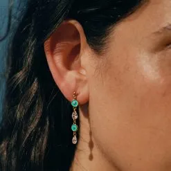 AGATHA FR Boucles D’oreilles Pendantes CYCLADES – Turquoise / Doré