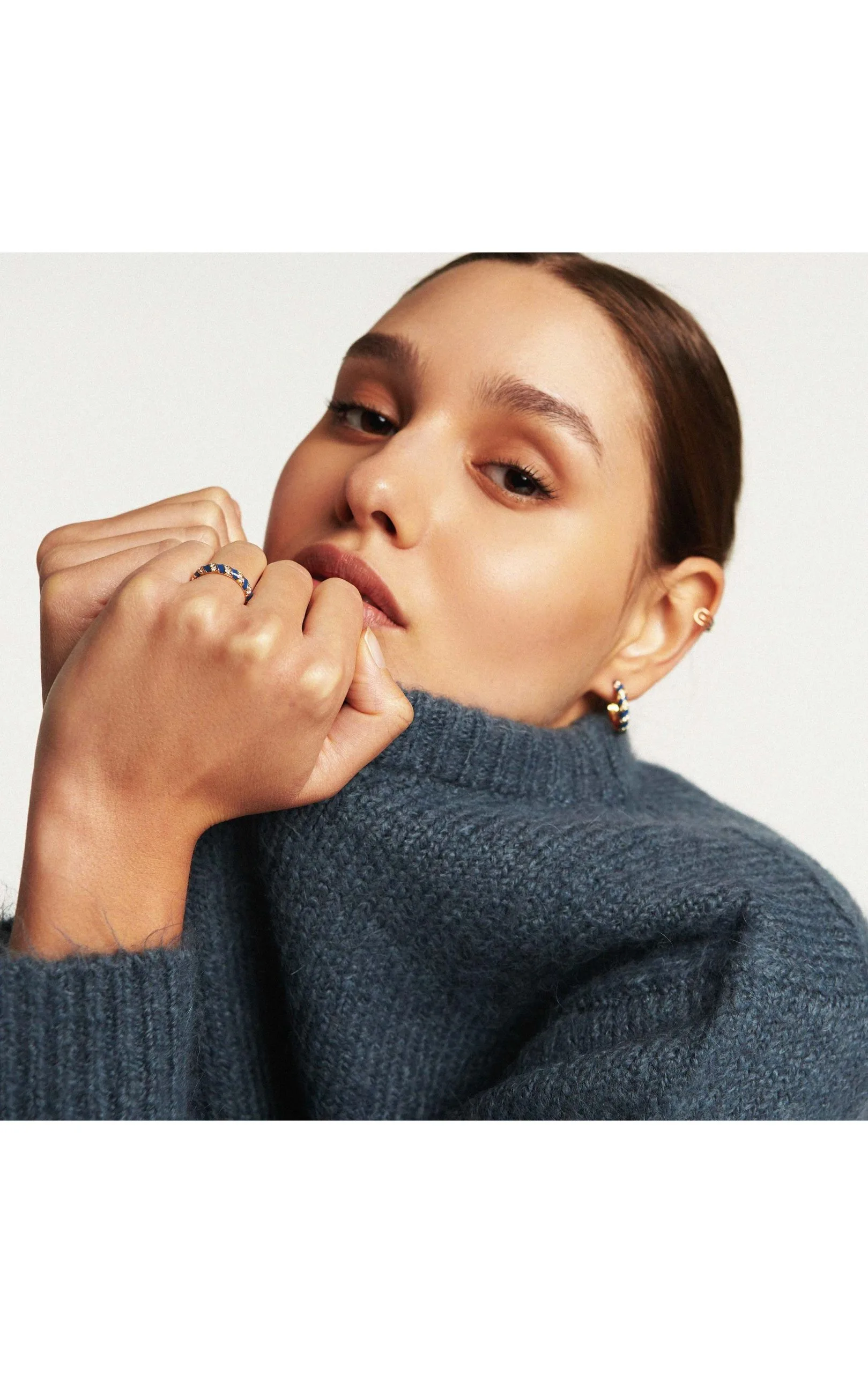 Cet hiver, vous allez succomber pour ces petits bonbons colorés et adorerez les accumuler selon votre humeur! Cette bague dorée à l’or fin 14 carats est entièrement pavée de strass effet diamant combinés en torsade avec de l’émail bleu saphire. On est fan de son look classique chic que l’on peut twister facilement en l’accumulant à votre doigt avec les autres couleurs. Une pièce immanquable pour cette saison.