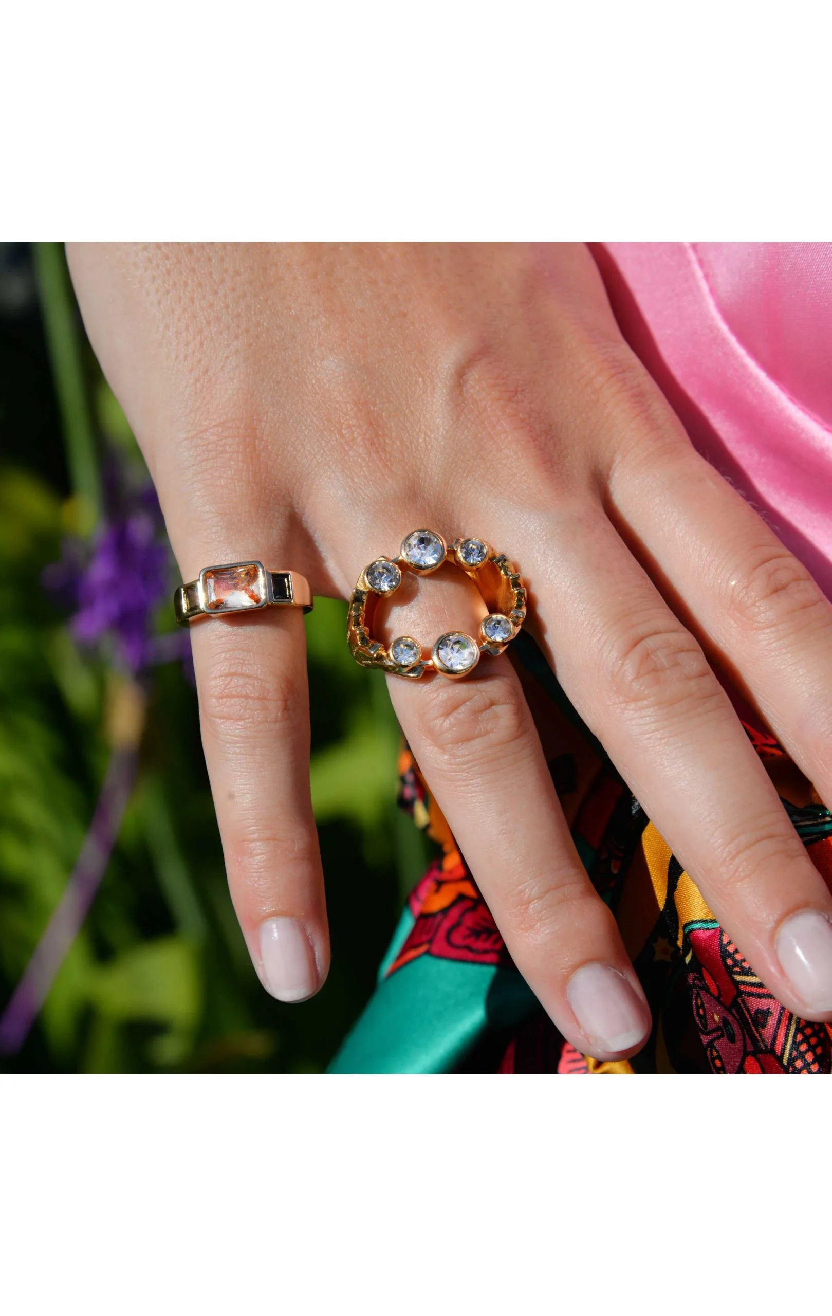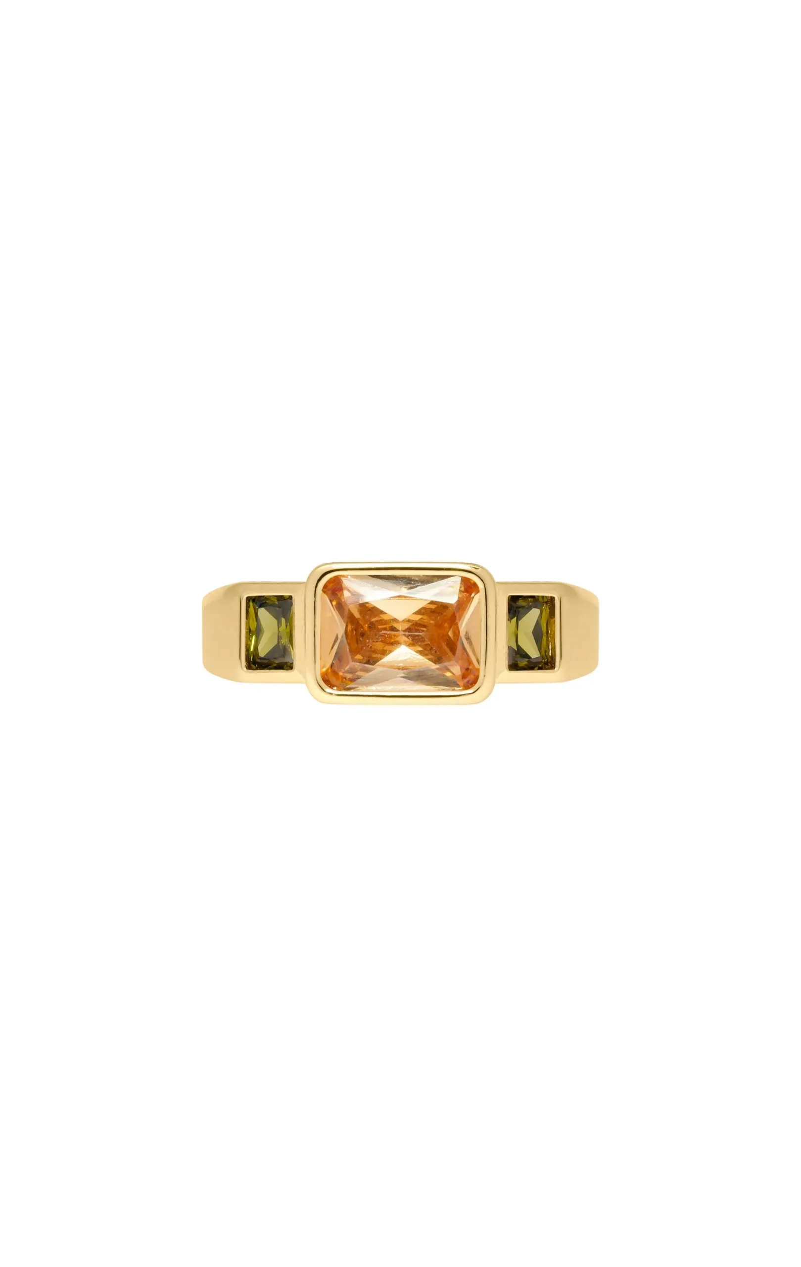 On file vers l’exubérance et on craque pour cette bague. Cette bague dorée ornée en son centre d’un strass jaune effet citrine, paré de chaque côté de deux strass vert effet péridot. La pièce maîtresse pour un style ostentatoire chic, où l’on retrouve la douce folie d’Hipanema.