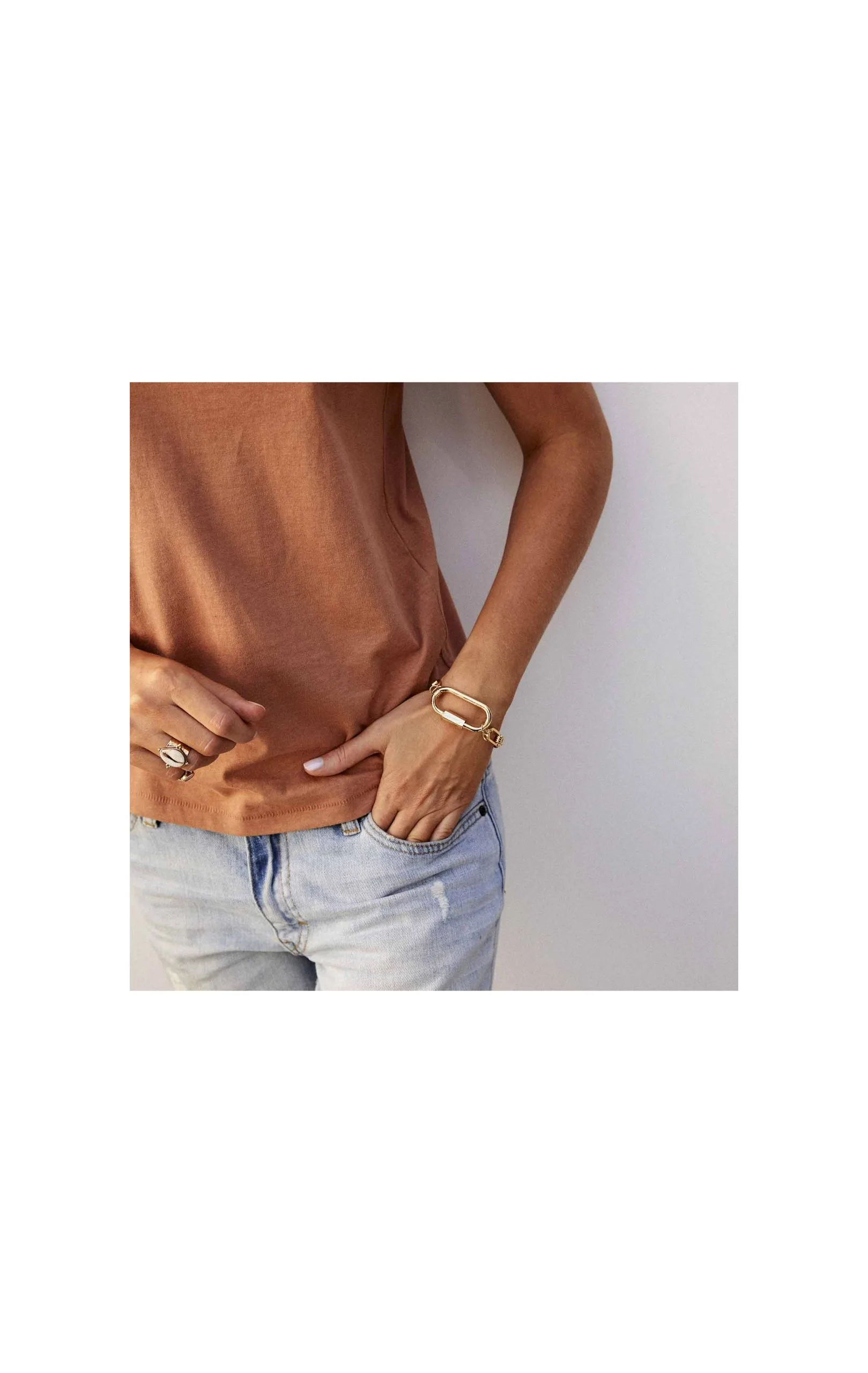Le LOCKET « GIANT » est le plus grand des fermoirs mousqueton. Il est ici présenté en laiton plaqué à l’or fin 14 carats.