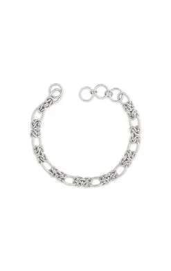 Les bracelets « CLARE » sont les liens en chaîne. Ici vous est présenté une chaîne épaisse de maille ovale, rattachée avec un maillon papillon, argentée au rhodium.