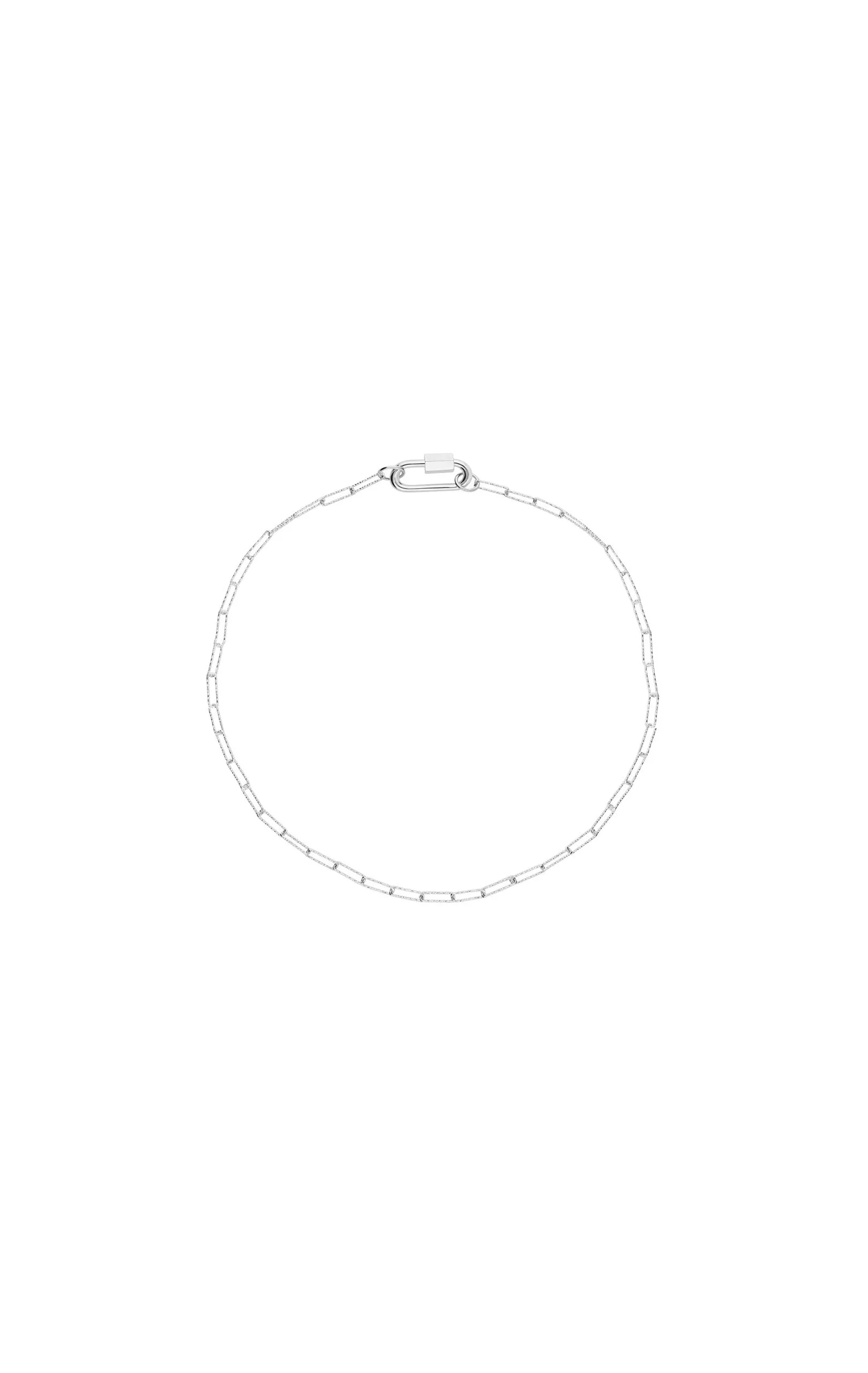 Les colliers « CRUSOE » sont les liens en chaîne. Ici vous est présentée une chaîne argentée très fine à maillons rectangulaires martelés. À associer avec les fermoirs « LOCKETS ». Fermoir non inclus, il faudra compléter votre commande avec un Locket.