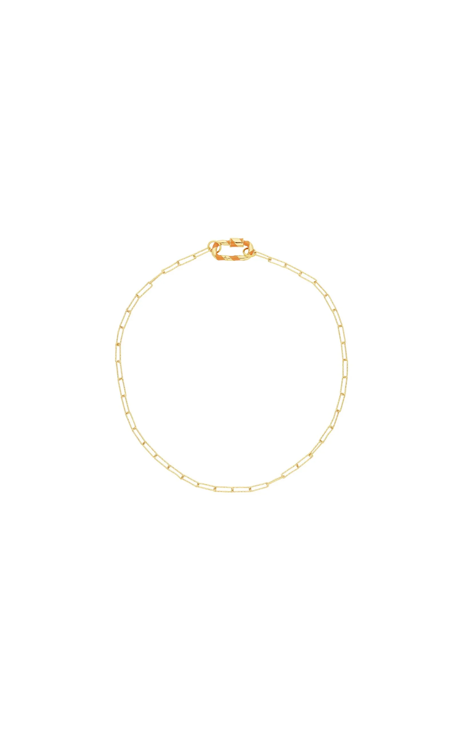 Les colliers « CRUSOE » sont les liens en chaîne. Ici vous est présentée une chaîne très fine à maillons rectangulaires martelés, dorée à l’or fin 14 carats. À associer avec les fermoirs « LOCKETS ». Fermoir non inclus, il faudra compléter votre commande avec un Locket.