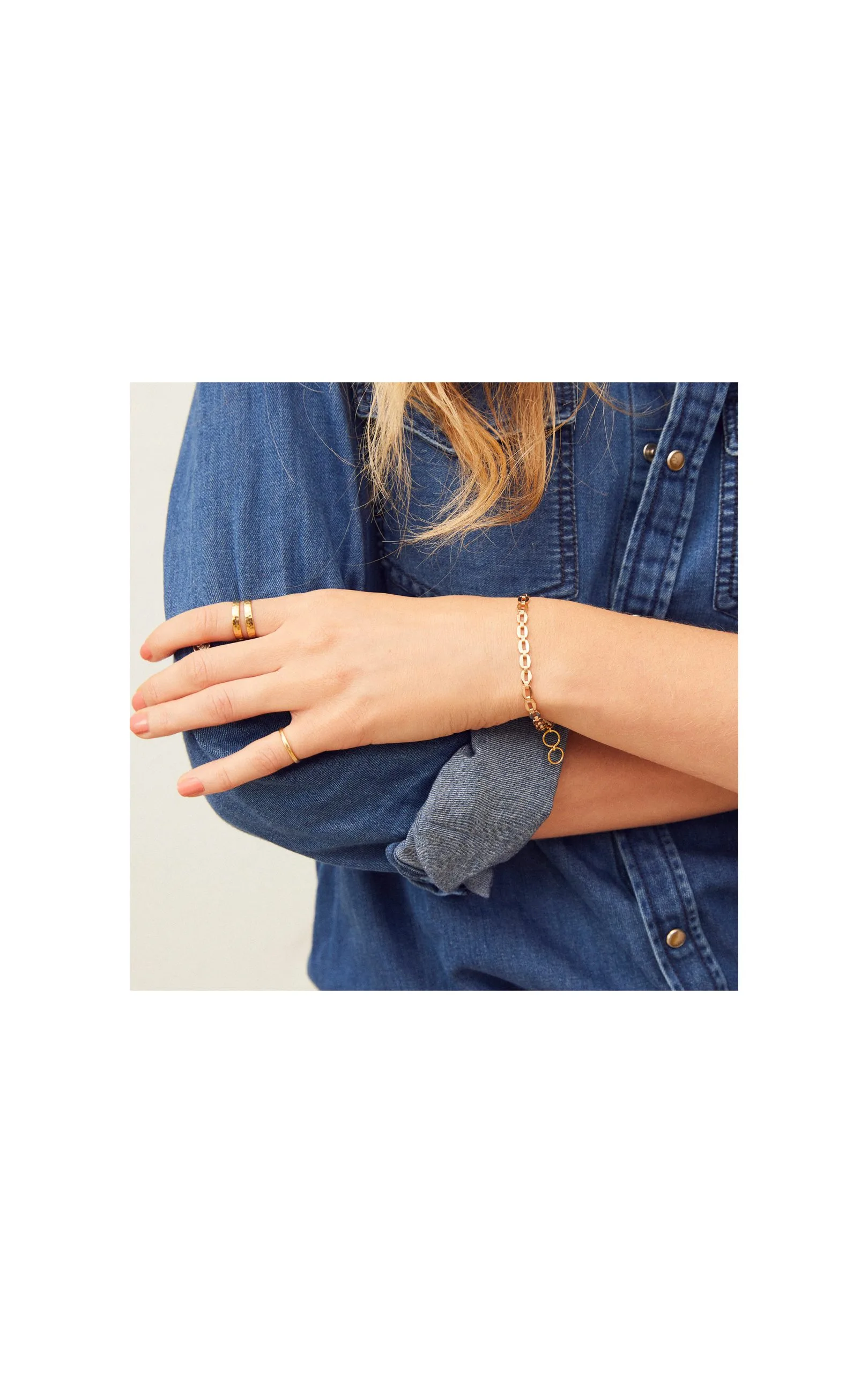 Les bracelets « LEE » sont les liens en chaîne. Ici vous est présentée une chaîne fantaisie fine de maille rectangulaire et ouvragée, dorée à l’or fin